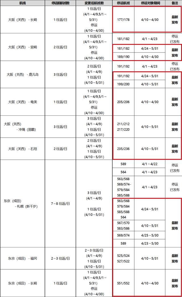 ▲国际线的停运时间全部延期到5月31日(部分延期到5月30日)。
